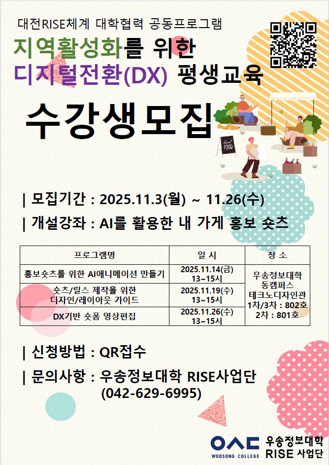 우송정보대학 동캠퍼스 테크노디자인관(E1) 1차/3차 : 802호 2차 : 801호 |