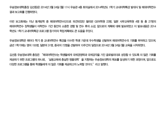 어학특강 발대식 및 어학연수 보고회