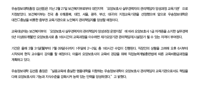 요양보호사 관리책임자 교육기관